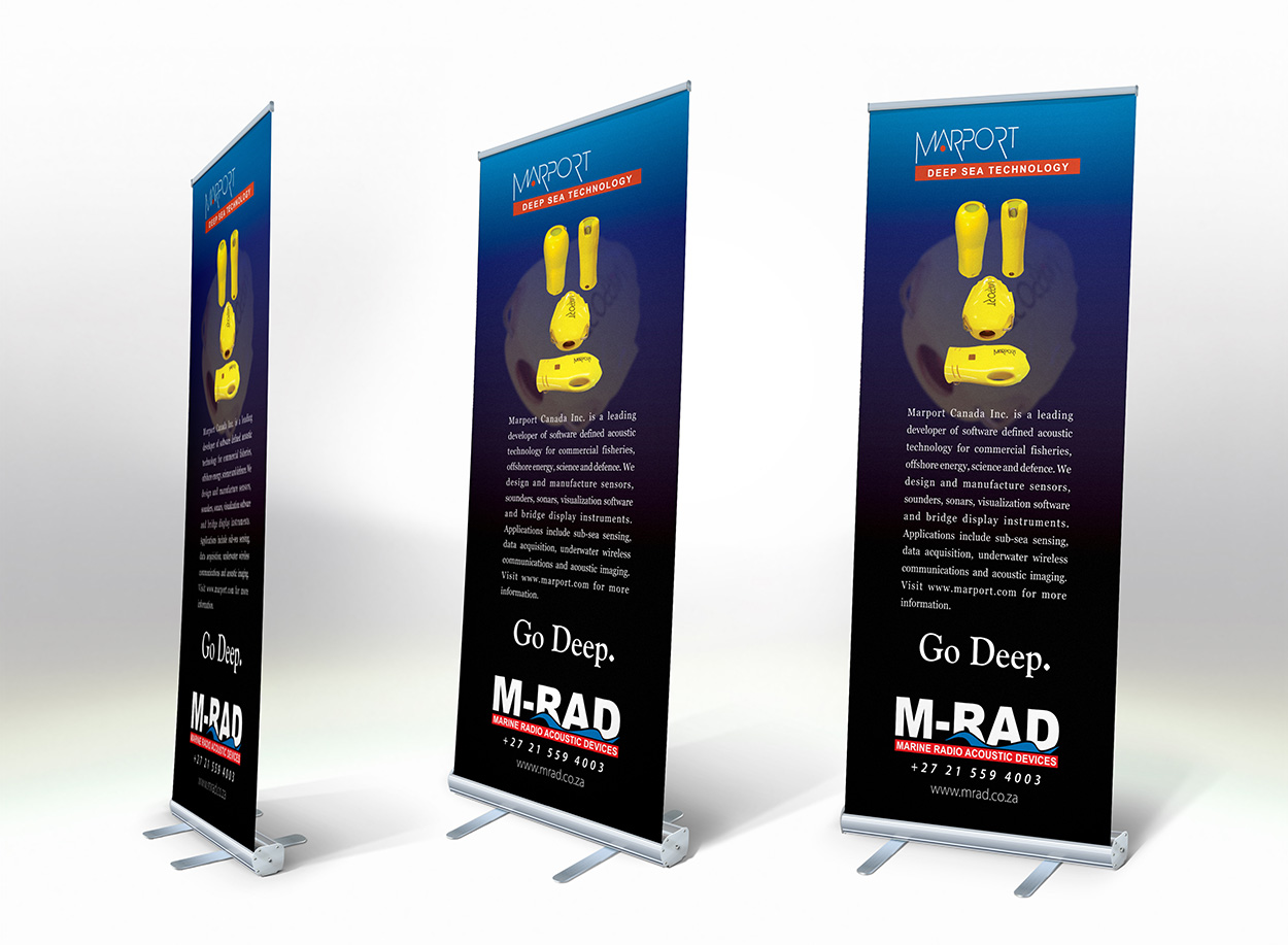 Various banners we've designed and manufactured for events, conferences and product launches - for our long standing client - MRAD (Marine Radio Acoustic Devices).