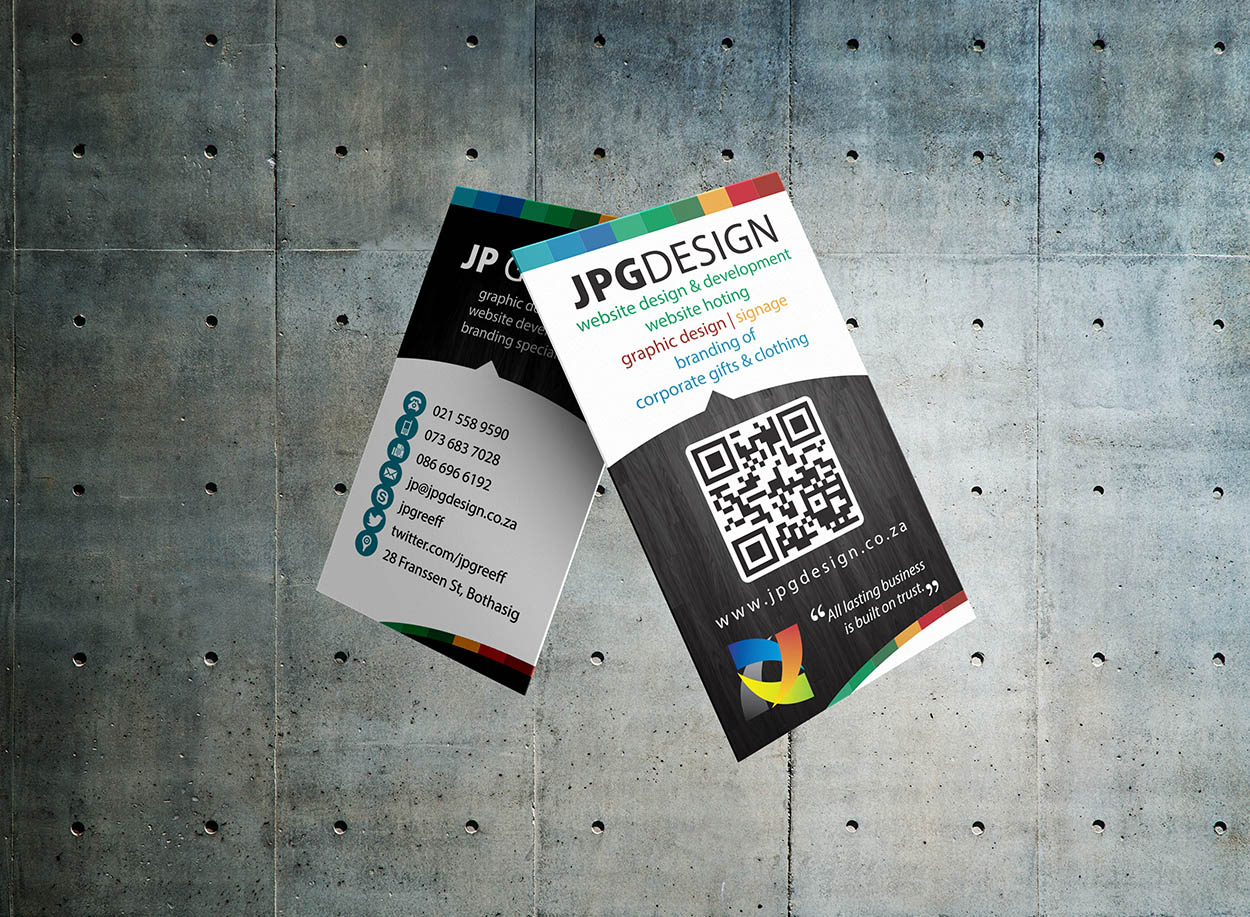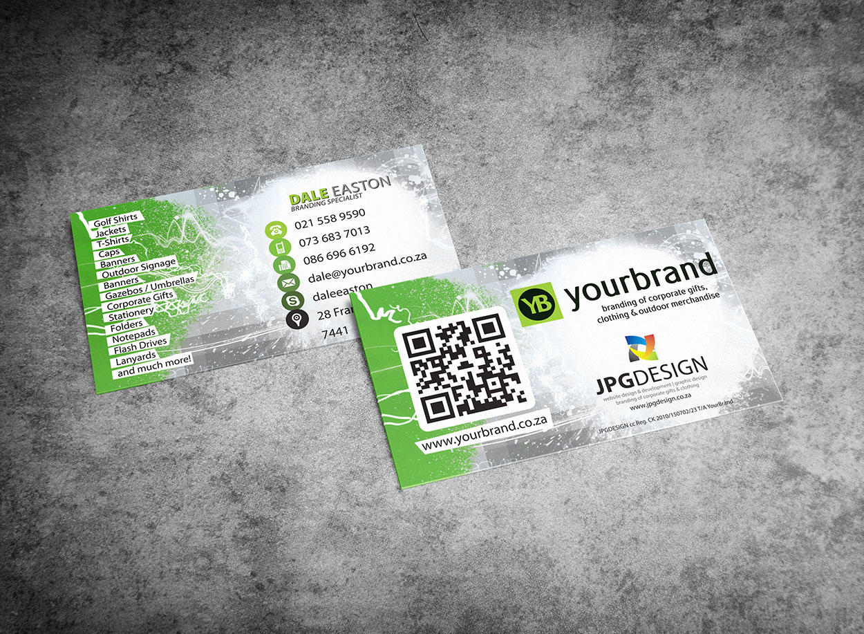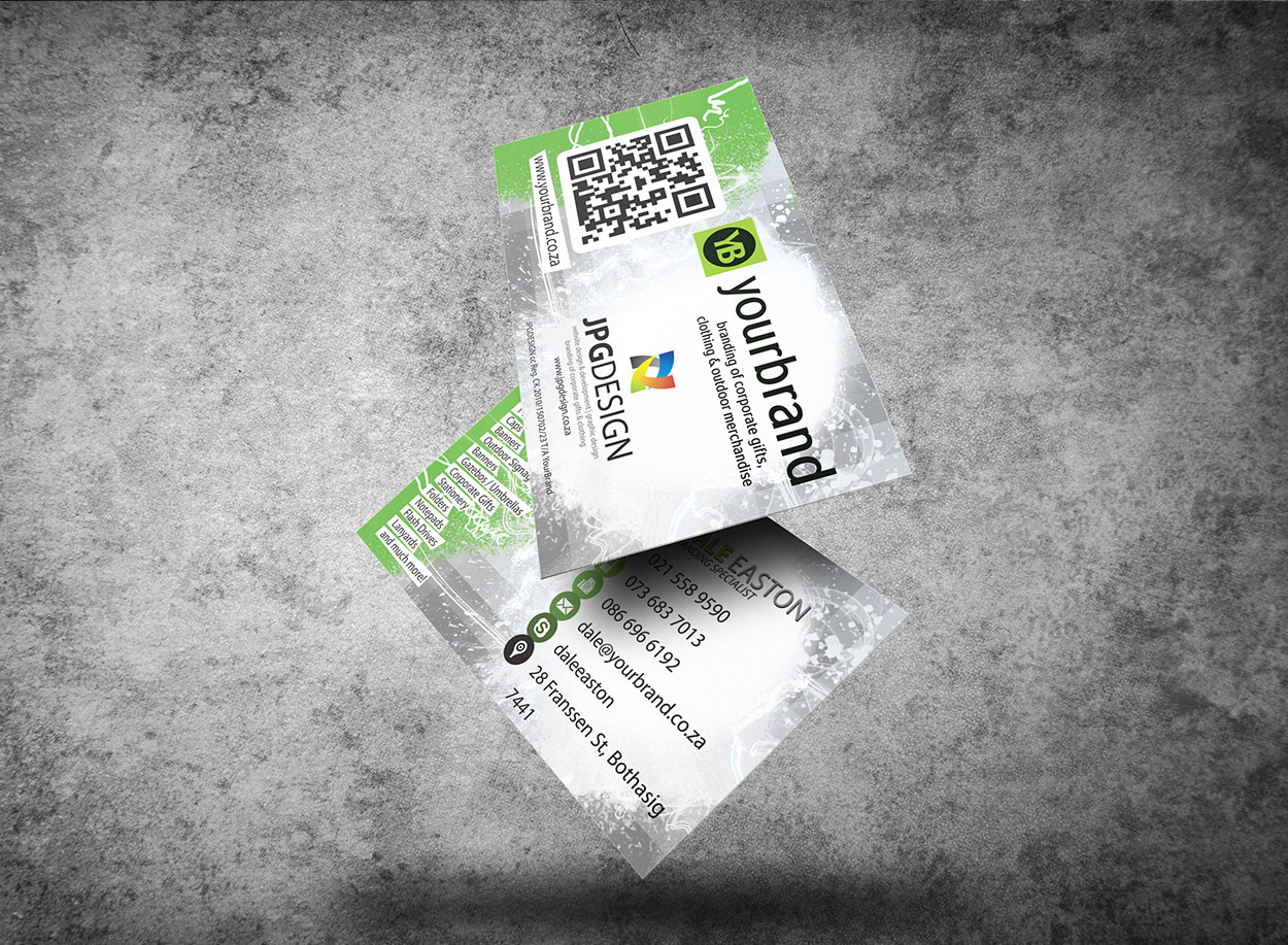 Designed and printed double sided business cards. We used photoshop to create the background with some pixelation effects and added splatters. Then imorted into our vector software to do the rest.
