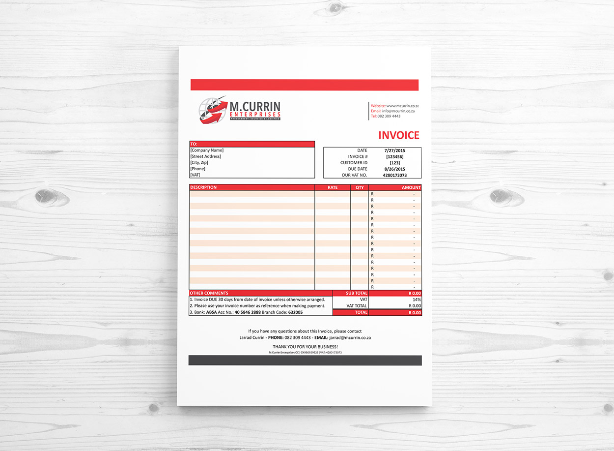 Invoice templates in MS Word or Excel format, or pre-printed - designed to your specifications and tailored for YOUR business - not just some template downloaded from the internet.