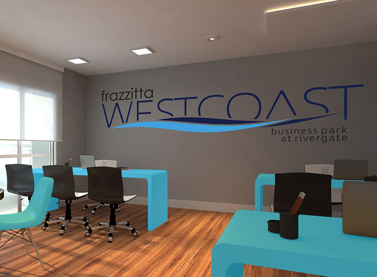 Frazzitta Property Holdings contacted us originally to redesign their website. Being property developers, they need logo's for new properties. We were briefed on the location of the new development, and designed this logo for Frazzitta Westcoast Business Park at Rivergate.
